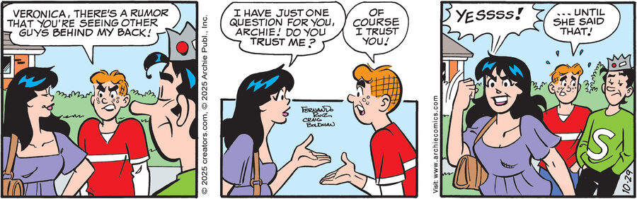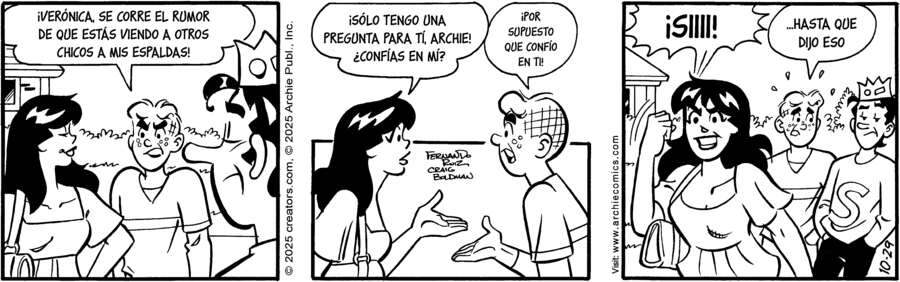 Archie Comic Publications, Inc. (or shortly known as Archie) is an American comic book publisher headquartered in Pelham, New York. The company is known for its many titles featuring the fictional teenagers Archie Andrews, Betty Cooper, Veronica Lodge, Reggie Mantle, and Jughead Jones. The characters were created by publisher/editor John L. Goldwater, written by Vic Bloom, and drawn by Bob Montana. They were based in part on people met by Goldwater "in the Midwest" during his travels throughout the United States while looking for jobs and places to stay.