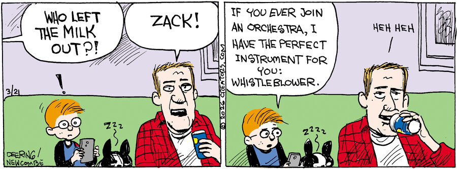 John writes the nationally syndicated comic strip Zack Hill, which he created with award-winning editorial cartoonist John Deering. The comic appears in over 20 major newspapers, including the Chicago Sun-Times, the Seattle Times, the Philadelphia Daily News and the Buffalo News. Zack Hill is currently being developed into an animated TV show by TV writer Will Schifrin (Fraser) and producer Prudence Fenton (Pee Wee's Funhouse). Zack Hill is also being adapted into a musical by Werner Trieschmann and Tom Tierny (Eleanor). Zack Hill can be seen every day on seattletimes.com or Comics.com.
