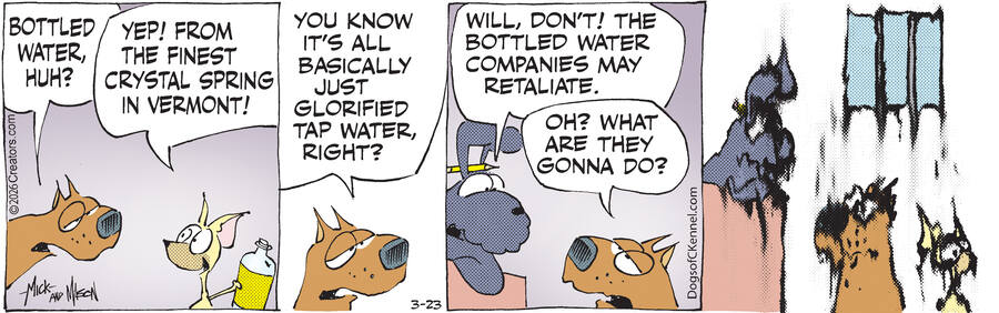 While attending stunt school, Mick's passion for dogs led him to volunteer at the Orlando SPCA. Having grown up reading B.C., Garfield and Mother Goose and Grimm books in bed every night, an idea for a comic strip began taking shape in his head. For a year, Mick developed the characters and wrote gags, filling several notebooks with Dogs of C-Kennel comic strips.