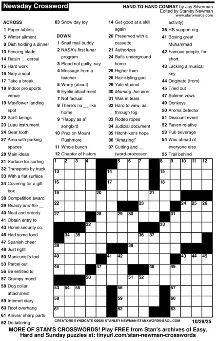 Because free access to the content of Newsday.com is available only to Newsday subscribers and customers of Cablevision (Newsday’s owner), many thousands of puzzle fans, spanning six continents, get the Newsday Crossword free every day right here at Stan’s Crossword Land.