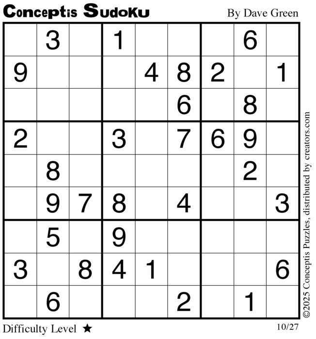 Each puzzle consists of a 9x9 grid containing given clues in various places. The object is to fill all empty squares so that the numbers 1 to 9 appear exactly once in each row, column and 3x3 box.