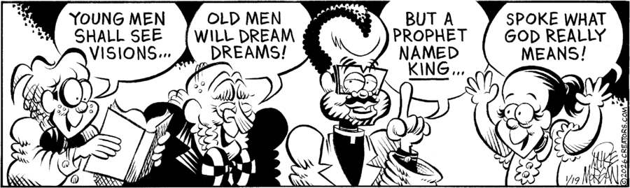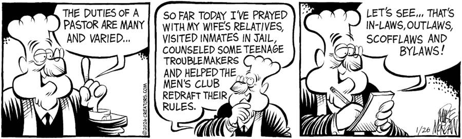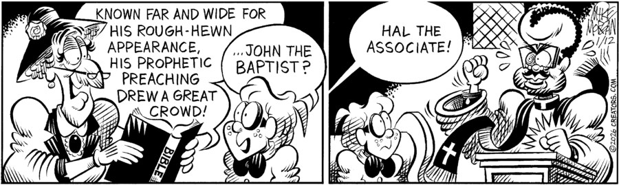 For Heaven’s Sake, is a weekly comic that celebrates the faith and the foibles of the congregation and staff at the fictional Mainline Memorial Church.