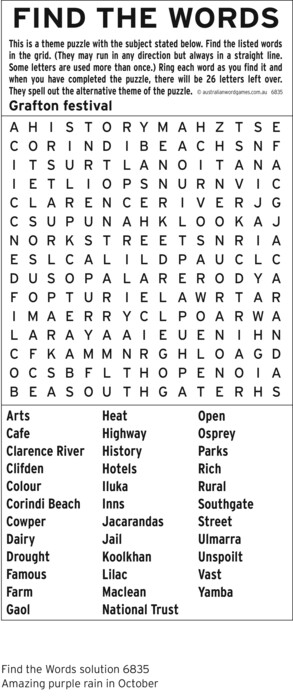 A daily wordfind with a new subject for each puzzle. Circle each word as you find it listed in the grid. Words may run in any direction, but will always be in a straight line. Keep in mind that one letter may be use multiple times.