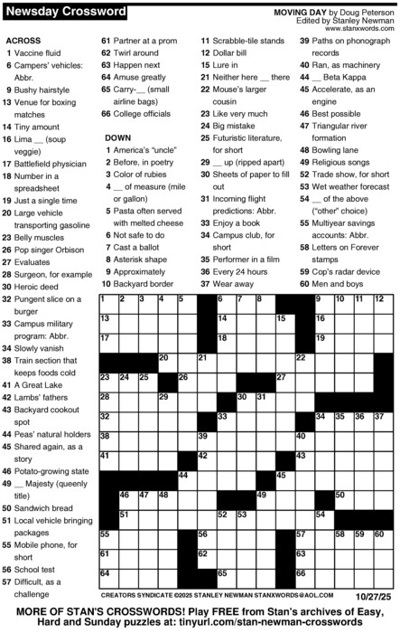 Stan Newman crafts a fresh and challenging puzzle every day of the week! Stay sharp and challenge yourself to solve each and every one.