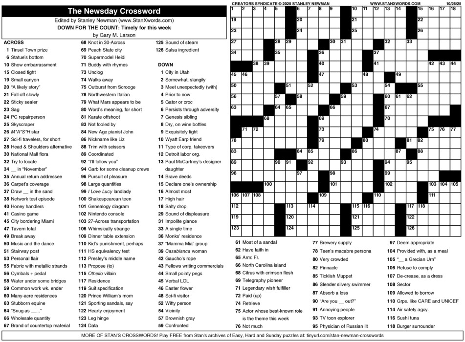 Sunday special edition crossword puzzles! Stan Newman, a household name for decades, crafts exceptional Sunday crosswords every week. Solve them solo or with a group.
